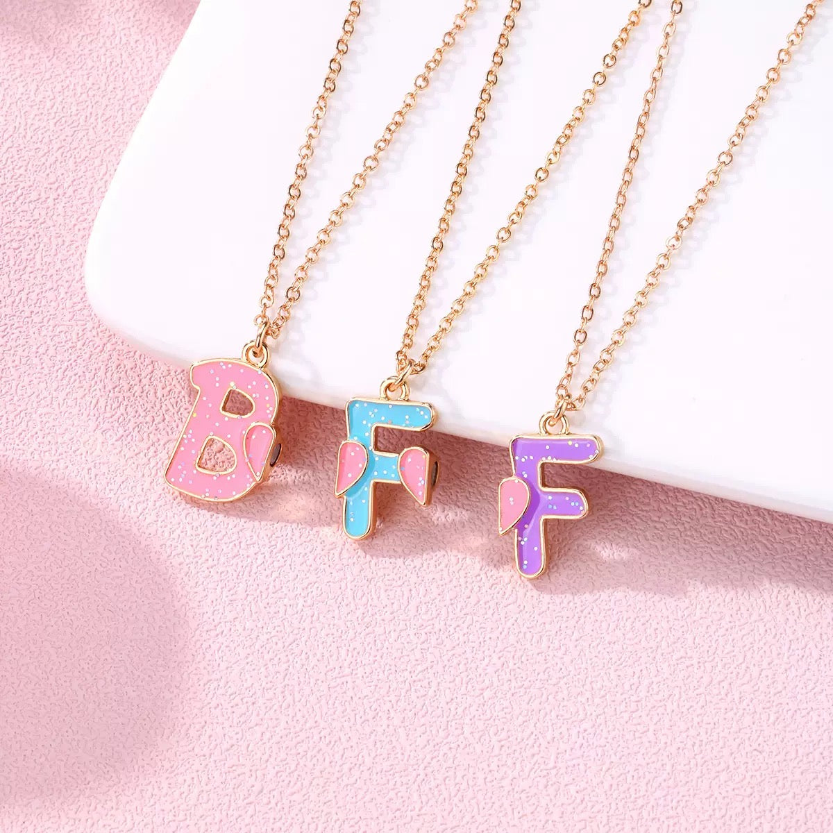 • 🔠 BFF Letter Pendants – Each necklace features a single letter — B, F, or F — because Best Friends Forever isn’t just a phrase, it’s a promise.