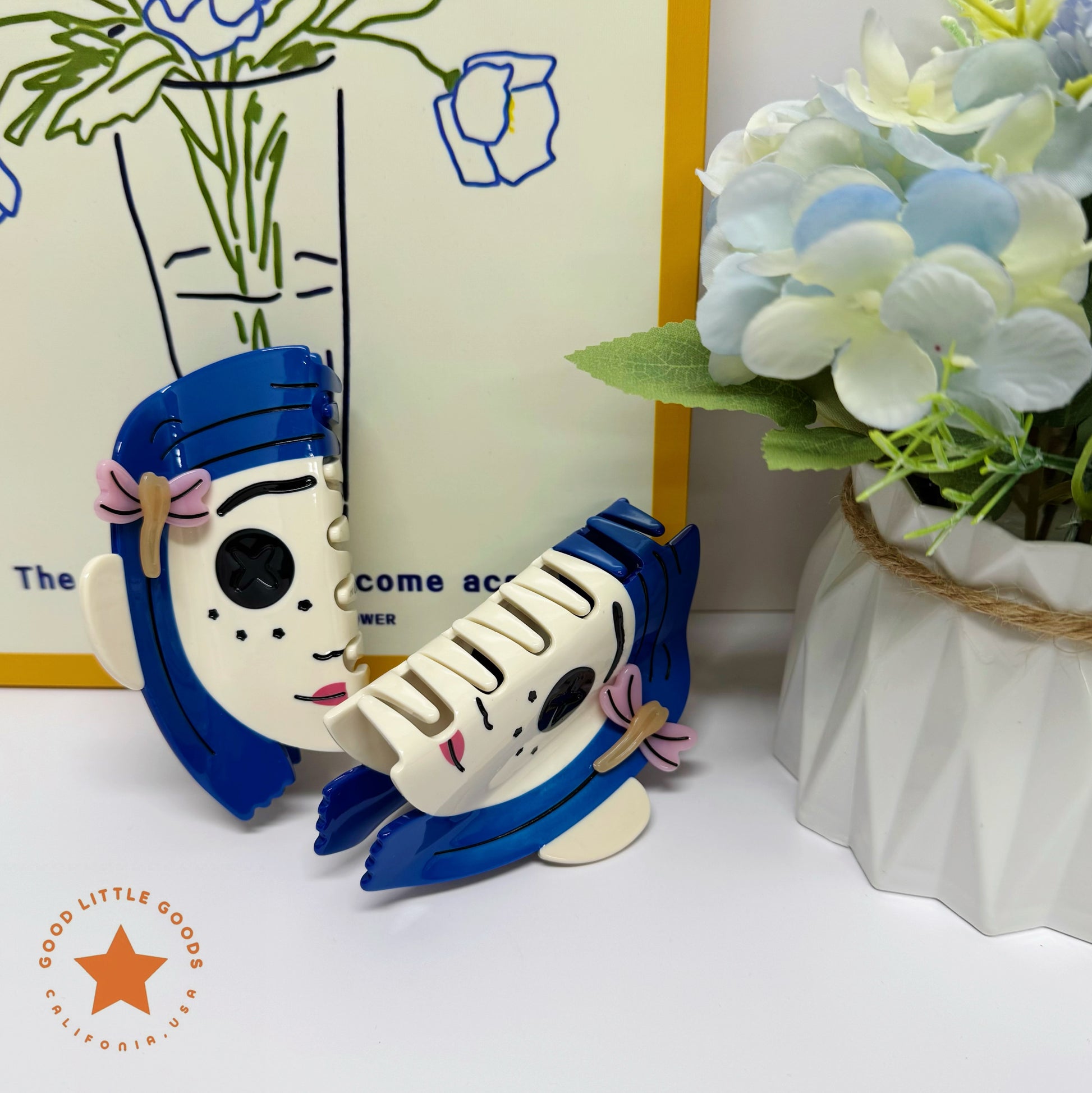 Blue-Haired Girl Double-Sided Claw Hair Claws