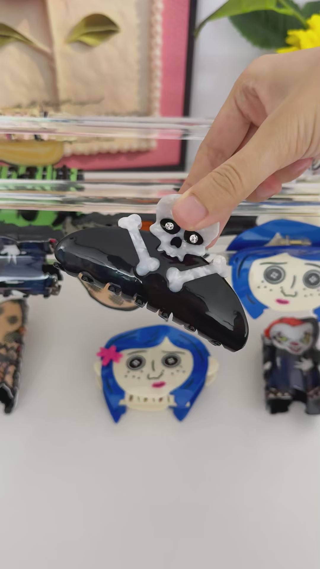 Add a fun, spooky touch to your hair with our Fun Horror Character Double-Sided Plastic Claw Hair Clips. Featuring bold, vibrant designs of iconic horror characters, these clips are perfect for making a statement. Whether you're dressing up for Halloween, cosplay, or just adding eerie flair to your everyday look, these clips are versatile and eye-catching.
